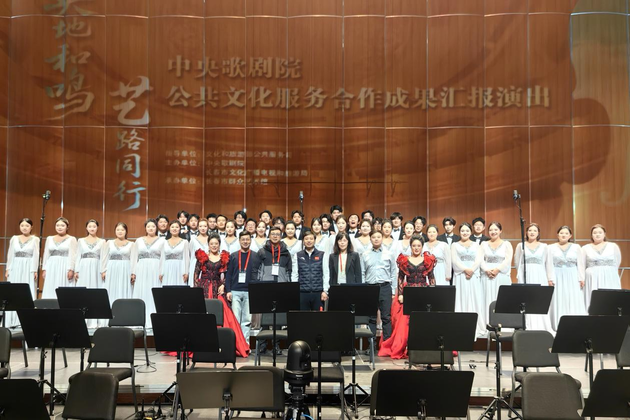 46名师生受邀参演由中央歌剧院与长春市文广旅局主办的“央地和鸣‘艺’路同行——中央歌剧院公共文化服务合作成果汇报演出”。该演出在北京中央歌剧院剧场举办,是学院合唱团首次赴京演出,中央歌剧院、长春文旅等平台同步开展现场直播,演出反响热烈,取得圆满成功。