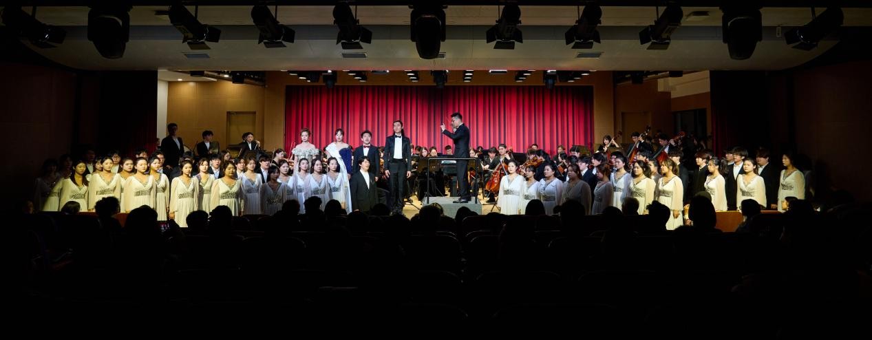 学生合唱团首次独立完成贝多芬《第九交响曲》第四乐章《欢乐颂》,突破了以往与专业院团合作的模式,演唱气势磅礴、意境恢弘。声乐专业本科生郑宇迪、刘玥言、张勖勋、姜铭泽担任领唱,他们与合唱团默契配合较好地诠释了这部经典作品。合唱团于2022年起启动学习排演《欢乐颂》的工作,学院多次邀请中央歌剧院艺术家莅临指导并进行同台演出。同学们经过三年多的学习和积累锻炼,最终凭借自身实力独立完成该作品的演绎。这是学院深耕本科实践教学、以演促学成果的生动缩影,彰显了吉大艺术学子潜心钻研的专业素养,为学院艺术人才培养的高质量发展写下有力佐证。