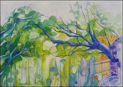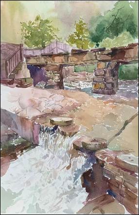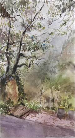 水彩创作以水色淋漓、透明层叠的特点,生动再现了太行山区雨雾朦胧的湿润氛围与溪流石壁的清澈质感,展现了时时彩开奖