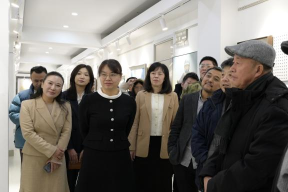 院长郭春方、党委书记冯彦杰、领导班子全体成员亲临展览现场,与研究生导师及院内外同学们共同参观作品展。