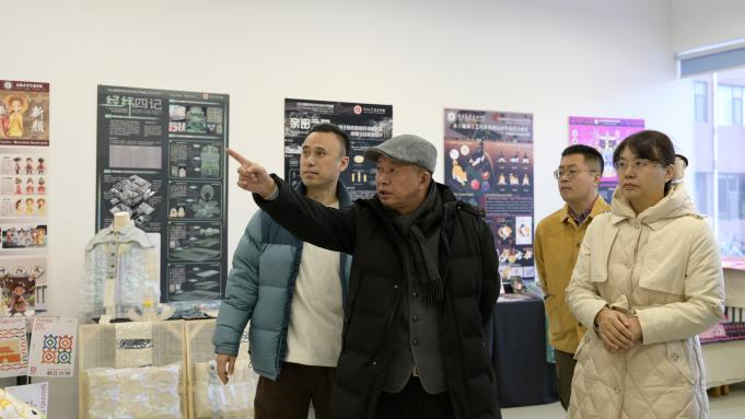 郭春方院长对2023级设计系研究生的毕业成果给予充分肯定,在现场指导学生们,在创作过程中,要借鉴优秀作品案例,提升审美素养与形式表现力;在参加主题赛事项目时,作品构思要突出核心创意、强化视觉层次,灵活运用主题视觉聚焦、逻辑动线引导、风格统一强化、细节对比突出等展示方法。