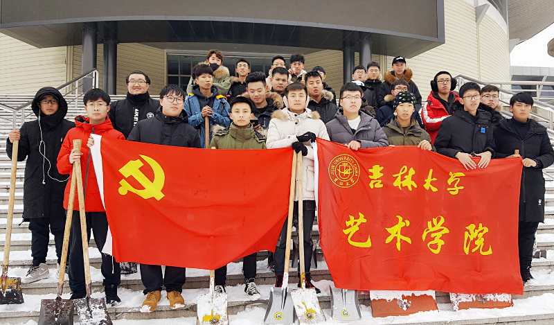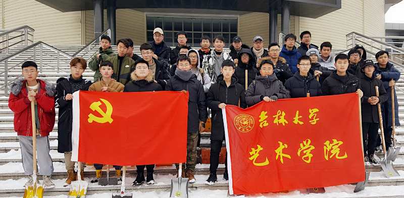 学子不怕苦、不怕累、乐于奉献的精神,为师生的安全出行牺牲了自己的休息时间,体现艺院同学专门利人、毫不利己的信念。