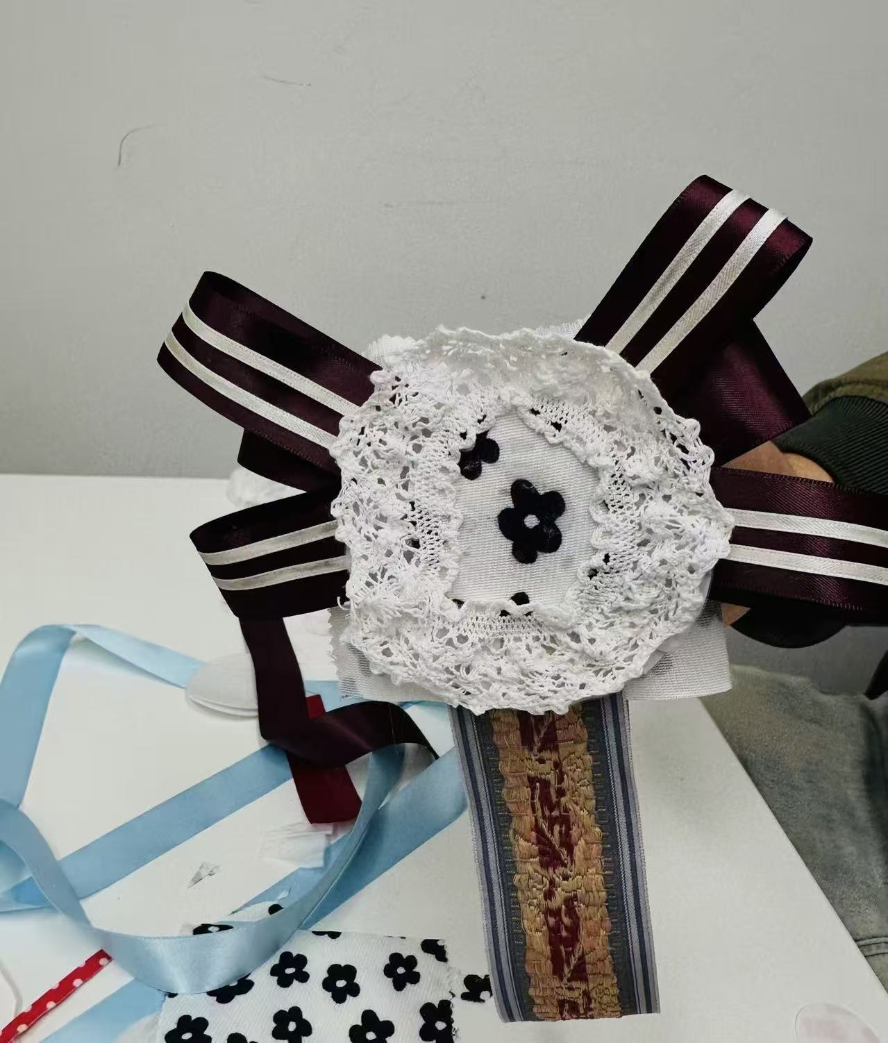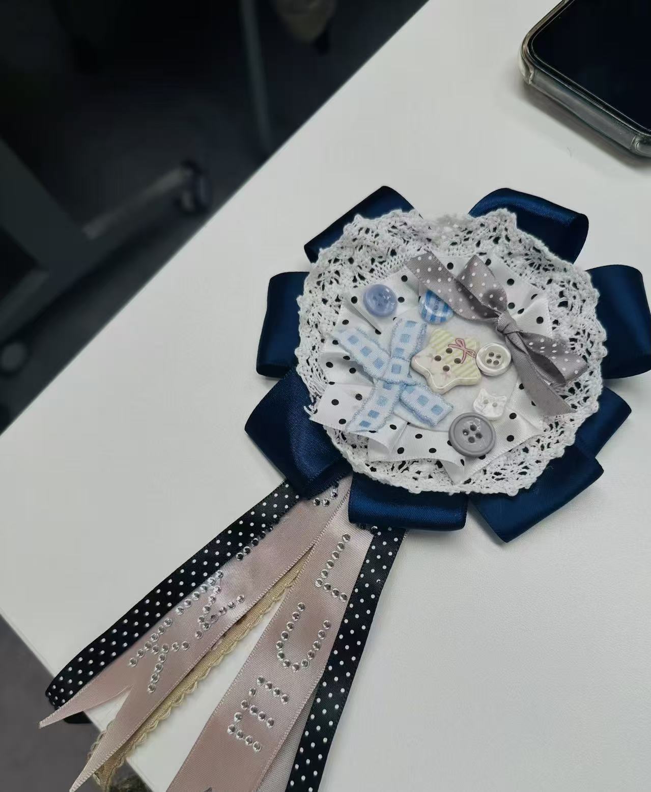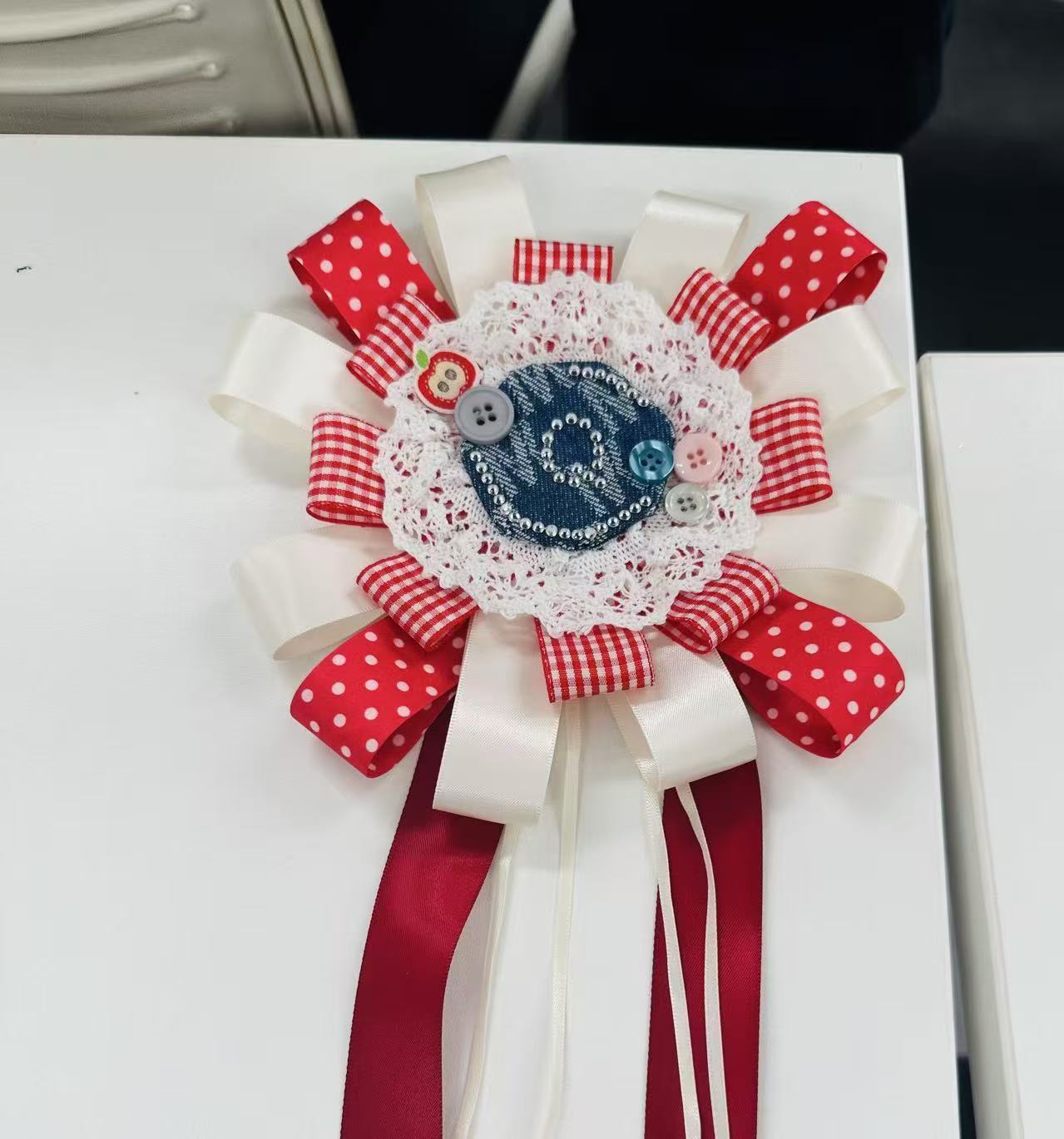 活动伊始,同学们有序签到入场。现场早已备好色彩斑斓的丝带、闪亮的珍珠配饰及剪刀、胶水等工具,琳琅满目排布整齐。同学们挑选材料后,纷纷动手实践——裁剪丝带、固定花材、点缀装饰。胸花制作完成后,进入温馨的“盲盒寄语”环节,同学们将提前手写的祝福卡片投入纸箱,再随机抽取一张他人的留言。一句句真挚的话语、一声声温暖的期许,通过小小的卡片传递开来,让每一位参与者在十一月的惬意时光里,既收获了独一无二的手工作品,更珍藏了一份份纯粹的美好与感动。